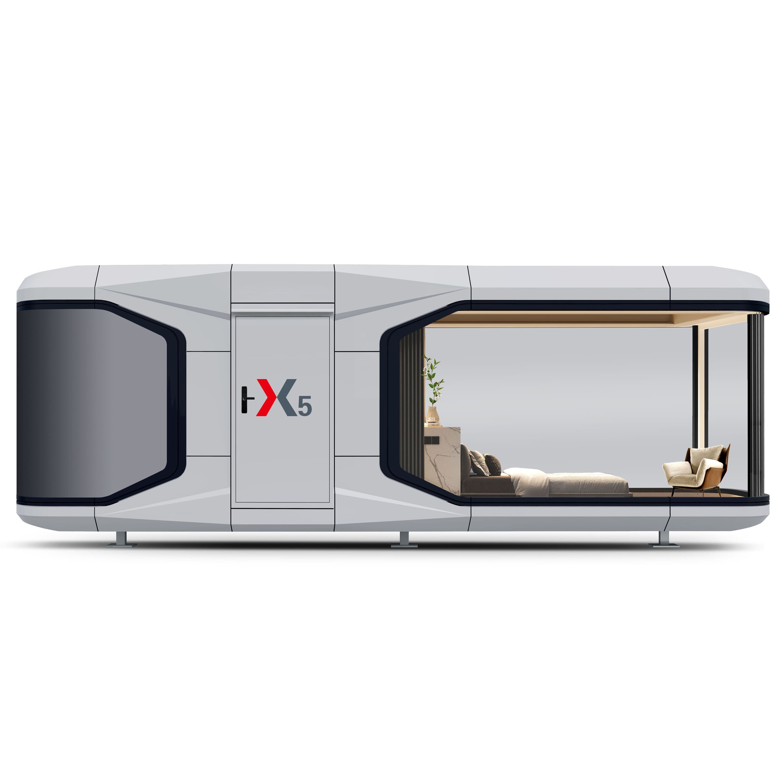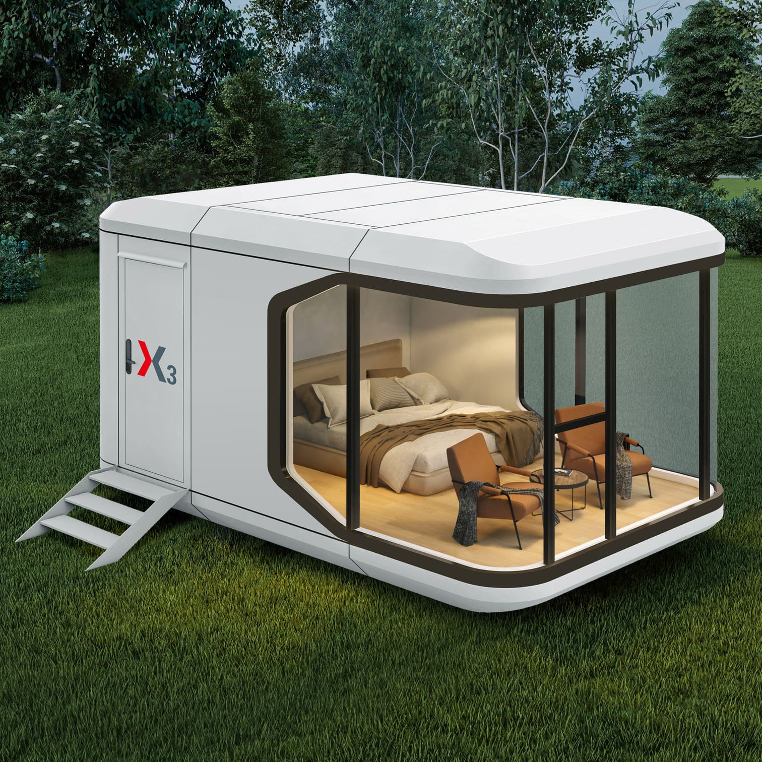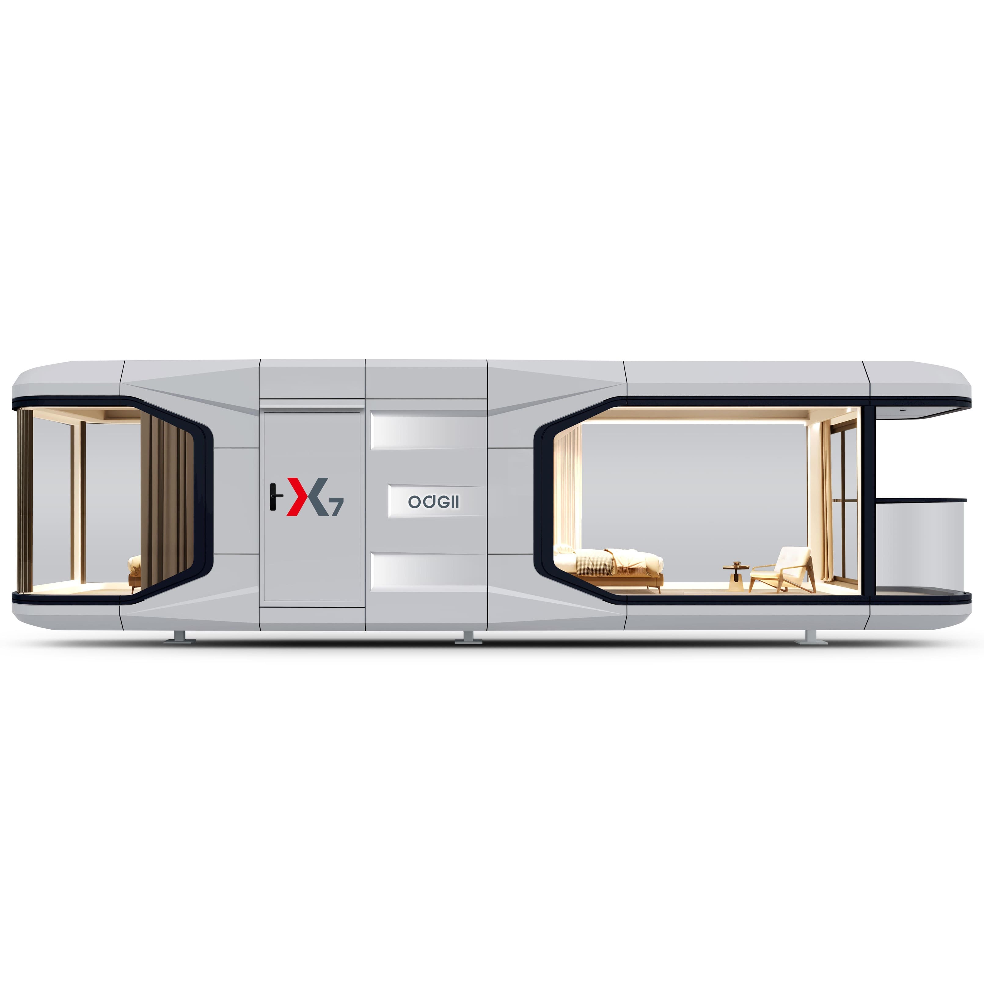 Комфортный, теплый малоэтажный модульный дом 18 м2, с панорамным остеклением, на 2 человека
